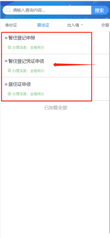 三、点击“暂住登记凭证申领”