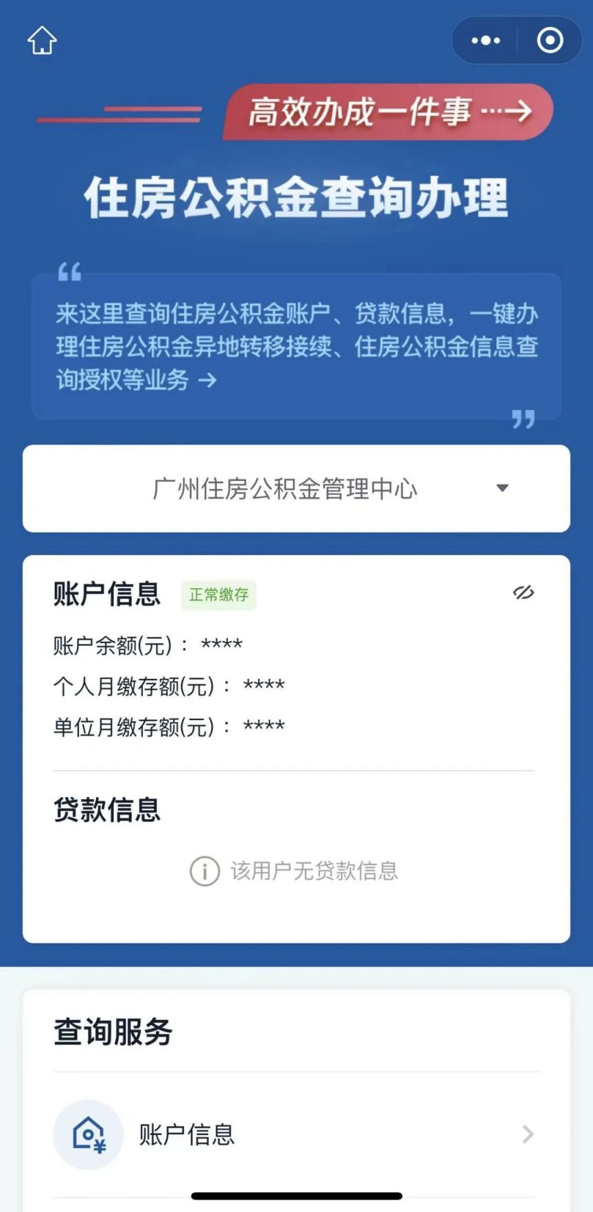 答:公积金账户信息,快速查询流程: