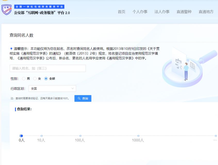 【导语】:公安部“互联网 政务服务”平台的网页端、app端可以进行全国范围内同名人数的查询,详见全文。