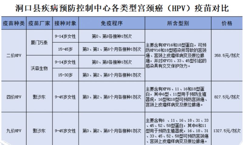 【导语】:洞口县四价hpv疫苗827.5一针。洞口县疾病预防控制中心于今日起全面开放九价/四价宫颈癌疫苗接种,无需预约,可直接到我中心门诊接种。注意事项如下: